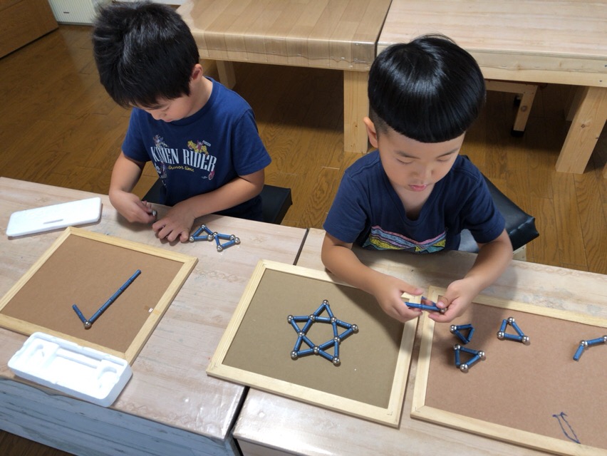 育ママ教室メソットの「ひらめき力」Lessonを様々な教具を使って行なっています。